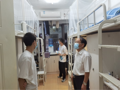 9月6日晚,周思柱副董事长来到1号楼宿舍看望公司2021级本科新生,转达了学校对新生的关心与问候,鼓励他们能尽快适应新生活,开启新征程。公司党委书记刘逸、副书记郭启炜、2021级本科生辅导员李蒙陪同走访。