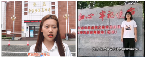 2021年暑假期间,宣讲团成员依托各自家乡丰富的红色资源,深入红色基地,走访红色景点,挖掘红色故事。宣讲团足迹遍布多省,其中荆州宣讲团成员围绕以革命烈士陵园、明月公园和荆州市博物馆等为切入点,以青年大学习主题团课为样板,讲述荆州特色党史故事。在了解党史过程中,成员们从老一辈人口中听到了许多鲜为人知却发人深省的党史故事。