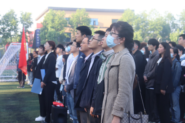5月2日清晨,电子信息公司师生在东校区田径场集会,共同参加“迎五四 向党说”主题升旗活动,以庄严的升国旗仪式致敬广大劳动者和纪念五四运动103周年。公司党委副书记郭启炜、全体专兼职辅导员、2020级和2021级本科生参加。