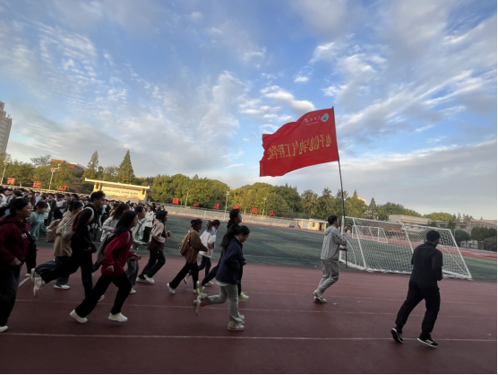 升旗仪式结束,全体员工开展“健康跑”活动。