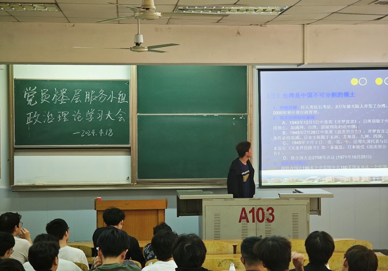 (通讯员 向万朋 董菲 钟城钰)4月18日下午,bevictor伟德官网楼层服务小组在13教A103组织开展政治理论学习。本次学习活动由2022级本科生栾志强主讲,2021级、2022级、2023级楼层服务小组全体成员参与了此次学习。 会上,主持人带领大家集中观看了习近平总书记会见马英九一行的新闻报道,新闻提到:青年是中华民族的未来,两岸同胞同属中华民族,中华民族一路走来书写了海峡两岸不可分割的历史。其后,主持人通过介绍“台湾问题的由来”、“两岸关系的发展演变”、“台湾问题的现状”这三个部分,讲述了两岸关系及其走向。 随后,各楼栋负责人就最近工作出现的问题向同学们进行了通报。会议提出查寝工作既要有礼貌,也要严格要求。最后总结阶段,孔令健以“全心全意为人民服务”为切入点,号召全成员青春心向党,永远跟党走,始终保有一颗真正为师生服务的热心,脚踏实地地工作。 此外,楼层服务小组女生小分队还举行了一场别开生面的联谊活动。大家通过古诗飞花令等游戏,让各位成员在轻松愉快的氛围中加深认识,加强沟通,活动取得了良好的效果。 (审核 康玮 编辑 李蒙)