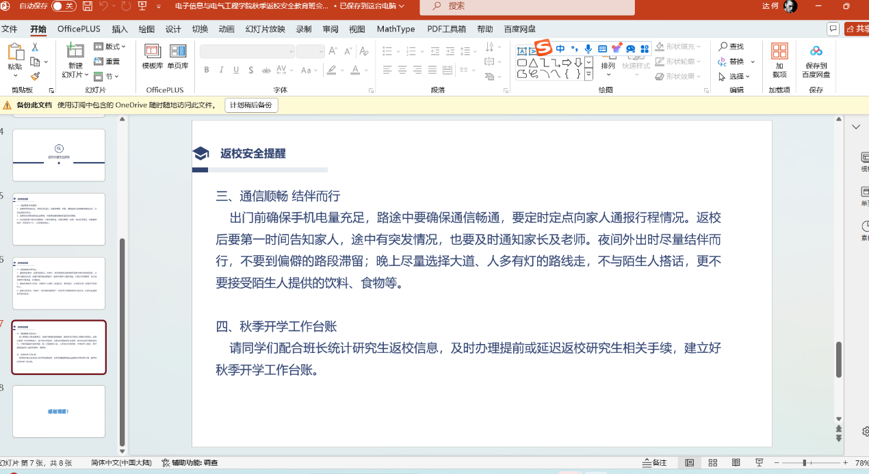 为确保公司秋季学期开学工作平稳有序,根据韦德官方网站党委员工工作部、党委研究生工作部《关于开展2024年秋季开学前主题班会的通知》的要求,bevictor伟德官网于2024年8月20日至8月22日期间召开了研究生的开学安全主题教育班会。 本次主题班会主要围绕新生开学线上报到流程及注意事项;员工来校前安全教育(消防、交通、人身、财产安全,防诈骗、溺水、校园欺凌、毒品等),加强网络文明建设教育;秋季开学员工报到返校要求、开学上课、补考注意事项等几个方面开展教育。 (审核 康玮 编辑 康玮)