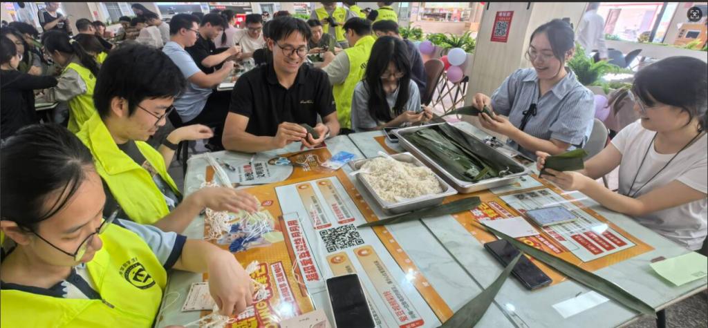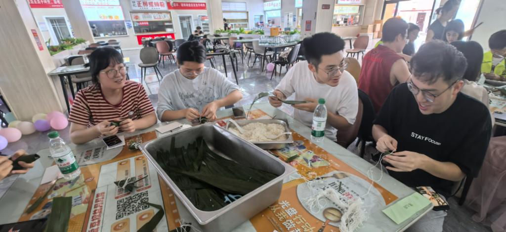 “粽”情端午,共话成长。5月29日下午,电信公司在新风食堂温情举行“粽叶裹深情,端午话成长”师生包粽子活动。公司党委副书记张晨露,辅导员、班主任老师与70余名员工共聚一堂,以传统佳节为纽带,倾听员工心声,共话成长难题,传递公司温暖。 活动以一首《离骚》朗诵拉开帷幕,在四位同学精神饱满,抑扬顿挫的诵读声中,屈原的爱国情怀与高洁品质仿佛穿越千年,深深感染着在场的每一个人。 粽叶裹情,长桌上,翠绿的粽叶、晶莹的糯米依次铺展,箬叶的清香在空气中悄然弥漫。师生围坐,折粽叶、填糯米、捆粽绳…… 虽然动作略显生疏,但欢声笑语却始终萦绕在每个角落。短短半小时内,形态各异却饱含心意的粽子在大家手中诞生。 粽香传情,师生们品尝着自己亲手包制的粽子,开启了一场温馨的“成长茶话会”。大家围绕学业压力、职业规划、人际交往等话题畅所欲言。面对学业压力,有同学分享了自己的时间管理技巧和学习方法;在职业规划方面,学长学姐们结合自身经历,为学弟学妹们提供了宝贵的建议;谈及人际交往,大家纷纷讲述着自己在与同学、老师相处过程中的趣事和感悟,互相学习如何更好地沟通与理解。老师们也认真倾听同学们的心声,给予专业的指导和温暖的鼓励,现场气氛热烈而融洽。 "今天的活动让我们在粽叶飘香中感受到了传统文化的魅力,而老师们的悉心指导,更让我们对未来有了更清晰的方向。这份关怀与温暖,让今天的粽子格外香甜,情谊更浓!"人工智能12203班王爱婷分享了自己的活动感悟。副书记张晨露表示,端午话心,搭建的是成长交流平台;关注心灵,聚焦的是健康与未来;传承文化,厚植的是家国情怀。祝愿这份在端午佳节结下的深厚情谊,如同清香的粽叶,长久地包裹着师生共同的温暖记忆,祝愿每一位同学都能在公司的沃土上勇往直前! 据了解,该活动是电信公司“心育·长大”全员谈心育人系列活动之列一,后续公司还将围绕“全员谈心育人”工作开展丰富多彩、形式多样的师生活动。 (审核 张晨露 编辑 颜国琼 )