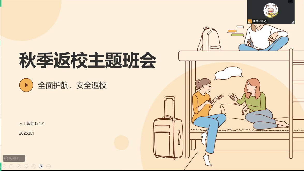 为进一步落实公司关于秋季学期开学相关工作要求,公司于9月1日至9月4日组织各班召开2025年秋季学期开学线上主题班会,年级辅导员、班主任积极参会。 主题班会主要围绕安全教育、员工学业及就业规划等方面展开。 会上,各班传达了公司关于秋季开学返校的安排,同时提醒同学们需加强健康管理。此外,班会围绕消防安全、交通安全、人身安全、财产安全、防诈骗、防溺水、网络文明建设等问题进行了细致讲解,提升同学们的安全防范能力与应急处理技巧。 最后,各年级辅导员对上学期班级工作和学业成绩进行回顾分析,教育引导同学们明确自身定位,做好学业和成长、就业规划,并鼓励同学们积极参与校园文化活动和学科竞赛,提升个人综合素质。 (审核 颜国琼 编辑 李蒙)