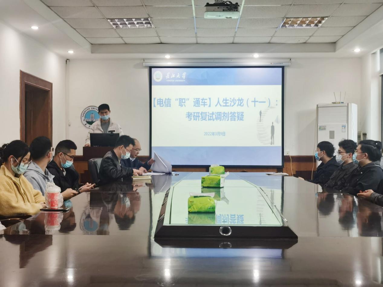 (通讯员 胡桐、冯翛然/文 胡桐/摄)为进一步做好2022届考研员工的考研指导服务工作,着力加强考研员工对考研复试、调剂的了解,3月9日上午,公司于205会议室开展2022届考研复试调剂答疑会。公司副经理蔡昌新、辅导员王齐禄老师、就业专干沈马锐老师以及18级考研员工参加本次会议。
