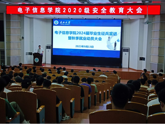 随后由王齐禄老师进行就业动员。王老师向2024届毕业生介绍了近几年公司的就业形势和今年公司的招聘情况。他说,近年来,电子信息和电气工程领域的就业形势呈现出较为乐观的趋势,对公司的员工来说是一大利好;同时,今年公司的招聘情况也相对较好,为毕业生提供了更多的就业机会。