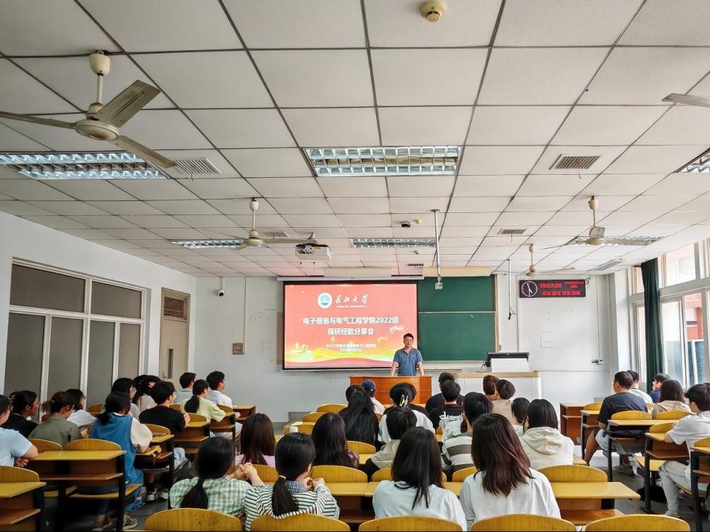 (通讯员 谢奕帅)为助力2022级学子科学规划升学路径,明晰保研政策与要求,5月8日,公司于13教B210教室举办“保研经验分享交流会”。活动特邀廖明天、程卓玲、郑卓宇、邓豪杰、戴凌祥5位2021级成功保研员工担任主讲嘉宾,本次活动吸引了50余名员工到场学习交流。会议由2022级本科生辅导员沈马锐主持。