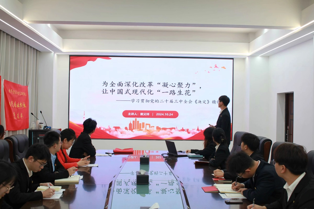 学习贯彻好党的二十届三中全会精神,是全党全国的一项重大政治任务。活动中,共青团荆州市委青年宣讲团康玮教授以“全面深化改革,推进中国式现代化”为主题向大家讲述了一堂生动的思政课,激励我们坚定理想信念,积极投身于全面深化改革的伟大实践中,做新征程的开拓者、奋进者。