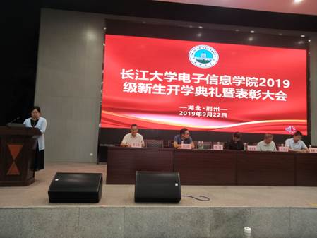 通讯员(陈荣)2019年9月22日15:00~18:00,电子信息公司2019级新生开学典礼暨军训表彰大会于农科大楼1058报告厅成功举行。经理孙祥娥教授、党委书记刘逸、党委副书记郭启炜、电子信息系主任邹学玉教授、仪器系主任吴爱平副教授、电气系主任杨旭辉副教授及2019级全体本科生出席此次会议。会议由郭启炜副书记主持。