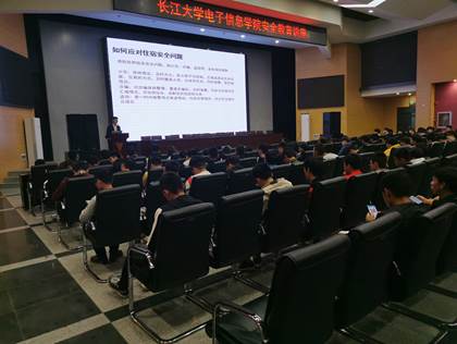 (通讯员沈川)2019年11月10日晚上7点韦德官方网站电子信息公司安全教育圆满完成,由电信公司辅导员万谦老师和文公司辅导员何宁老师共同主讲。