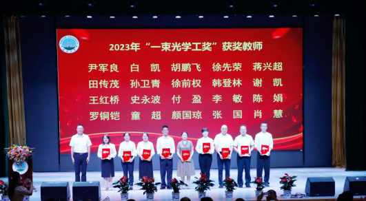 (通讯员 李蒙)近日,韦德官方网站 2023 年“一束光学工奖”获奖名单揭晓,公司谢凯老师荣获“优秀研究生导师”,颜国琼老师荣获“优秀辅导员”。9月10日,公司隆重举行第39个教师节庆祝大会,员工李树光为2023年“一束光学工奖”获奖教师颁奖。