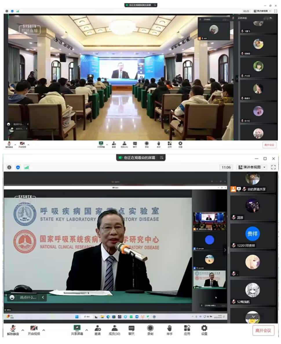 讲座中,钟南山院士通过讲真实案例、摆真实数据回顾和总结了近三年来疫情发展历程及我国抗疫的经验和成就,系统分析了奥密克戎传播的特点,对高校师生加强个人防护提出了建议。