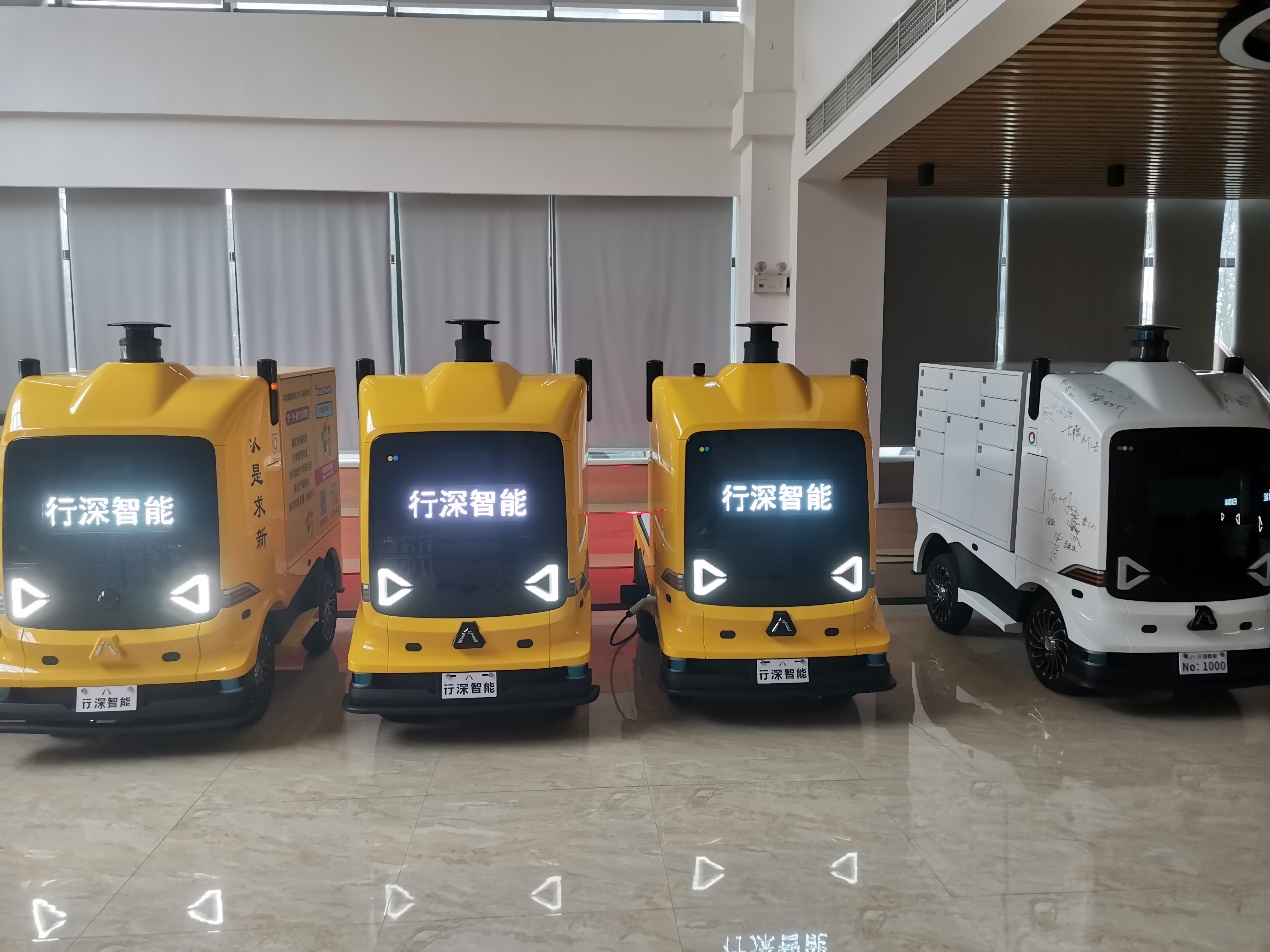 随后,双方在湖南城市公司现场参观了行深智能智慧校园应用经典案例之一——无人驾驶小车。目前行深智能无人配送车已经进入全国四十多所高校提供无人配送服务,包括快递无人配送、零售商品无人配送,员工只需手机下单即可预约取件,大大缓解了员工排长队集中取快递现象。此外还有无人驾驶校园防疫消杀车,旨在助力打造安全、有序的智慧校园。