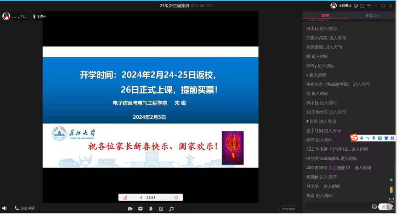 寒假期间,为进一步凝聚家校育人合力,强化寒假员工的学习生活和安全教育,助力员工成人成才,1月28日至2月5日,公司各年级召开了“凝聚教育合力,家校共同育人”线上家长会,每场参与家长近500人,会议由各年级辅导员主持。 会上,辅导员老师从预防电信诈骗、假期交通安全、考研推免、就业、假期生活学习规划等与家长进行沟通与分享。大一年级重点强调员工生活及学习习惯的养成,总结反思这一学期个人学习情况,分析员工期末成绩等问题。大二年级强调要把握学习节奏,积极参加专业竞赛,职业生涯精准指导。大三年级强调要明确目标,提升科创能力,开展就业指导。大四年级就毕业生考研、签约和找工作等基本情况,员工的择业心态,员工的心理情绪的变化,谈心等方面进行了介绍。家长们纷纷提出建议,表示要积极加强家校沟通,为培养员工健康成长而共同努力。 假期线上家长会的召开,不仅有助于家长们了解员工在校情况,也为家长做好员工安全教育和学业规划起到了良好的指导作用,增进公司与家长的联系,发挥家校协同育人作用。 (审核 颜国琼 编辑 李蒙)