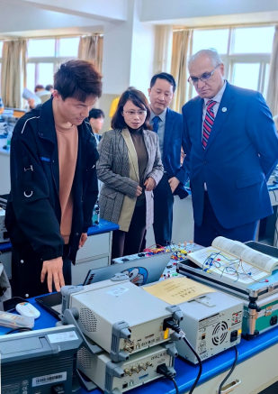 4月12日,美国圣克劳德州立大学副董事长Shahzad Ahmad一行到访公司,参观了公司电工电子国家级实验教学示范中心。